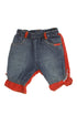 Jean, taille élastique, chevilles avec liens de serrage à nouer, 2 poches sur les côtés, 1 derrière, à signaler un mini accroc aux fesses.