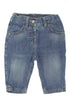 Taille réglable élastique fermée par 1 crochet, 4 poches, effet vieilli d'origine, petites fentes aux chevilles.