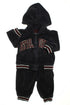 Survêtement en velours composé d'un sweat zippé, à capuche, taille et poignets resserrés, lettres en feutrine appliquées et d'un pantalon, large taille élastique avec liens de serrage, chevilles resserrées, le confort absolu!