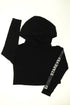 Capuche doublée, poignets resserrés, sérigraphie aux manches, cropped.