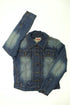 Doublure moumoutte, col plat, fermée par pressions, 4 poches don 2 à la poitrine ornées de clous, effet vieilli d'origine.
