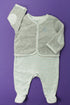 Dors-bien sans manches en velours, pressions aux épaules et à l'entrejambe, broderie, brassière assortie en velours, doublé, coudières.