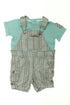 Salopette courte, bretelles réglables par attaches traditionnelles, pressions masquées à l'entrejambe, 5 poches, tee-shirt manches courtes, pressions dans le cou.