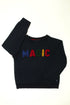 Poignets et taille resserrés, lettres en éponge bouclette.