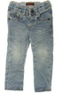 Taille réglable fermée par crochet, 5 poches rivetées, effet vieilli d'origine.