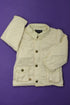 Finement molletonnée, col en velours fin, fermeture éclair masquée par un rabat à pressions, 2 poches.