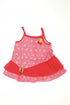 Fines bretelles, boutonnée dans le dos, volants, broderie.