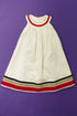 Entièrement boutonnée dans le dos, sans manches, rubans de gros grain.