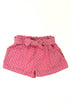 Taille élastique, ceinture ruban, 2 poches, revers aux cuisses.