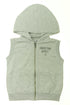 Zippé, capuche doublée, sans manches, taille resserrée, 2 poches en L.