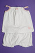 Ensemble composé d'un short, taille et cuisses élastiques, nœuds plats et d'un débardeur, fines bretelles milleraies, plastron élastique, entièrement fermé par pressions dans le dos, sérigraphie, trop mignon!