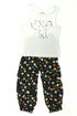 Pantalon fluide, taille et chevilles élastiques, débardeur, sérigraphie.