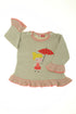 Boutonné aux épaules, finitions volantées, motifs appliqués.