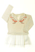Haut sweat, broderie, poignets resserrés, bas en tulle pailleté doublé.