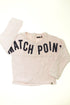 Zippé dans le cou, poignets resserrés, sérigraphie pailletée, haut en éponge bouclette.